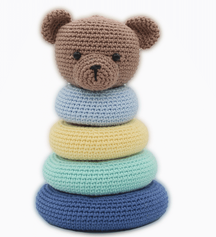 Der Stapelbär ist ein lehrreiches, lustiges und weiches Spielzeug für alle Kleinen! Die frischen Farben und das weiche Garn machen ihn attraktiv und sicher für kleine Kinder. Dieses Set enthält ein Muster (EN, NL, FR, DE), hochwertiges Garn aus 100 % Baumwolle und alle Kurzwaren, die für die ersten Schritte benötigt werden (außer Häkelnadel). Der Stapelbär ist ca. 18 cm groß und wird mit einer Häkelnadel 2,5 mm gehäkelt.