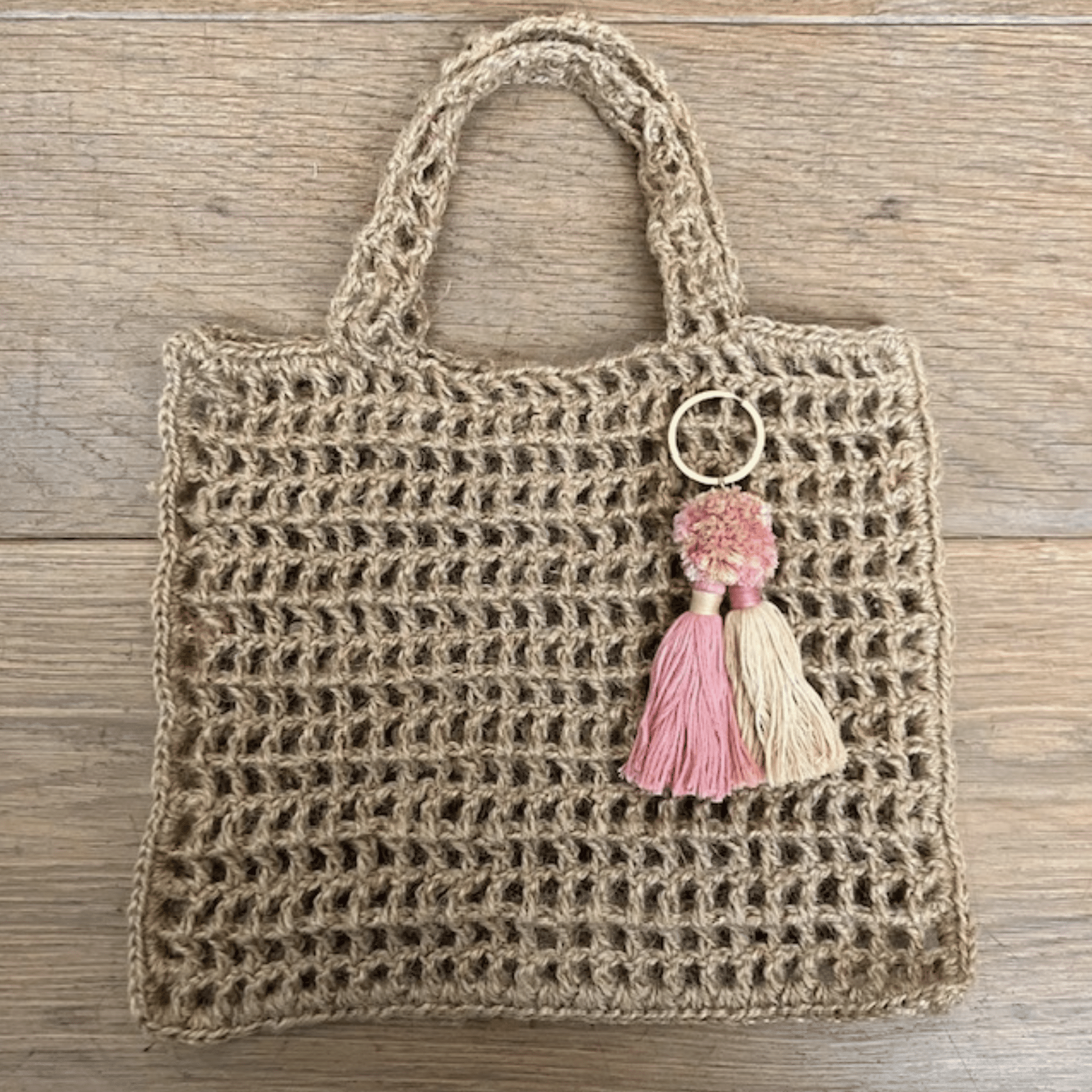 Handgefertigter Schlüsselanhänger mit Quasten aus Bio-Baumwolle