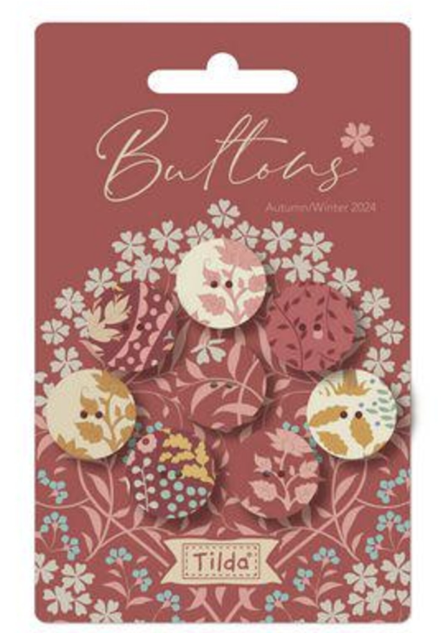 La collection Sanctuary de Tilda comprend 8 boutons recouverts de tissu de 18 mm (3/4 po).