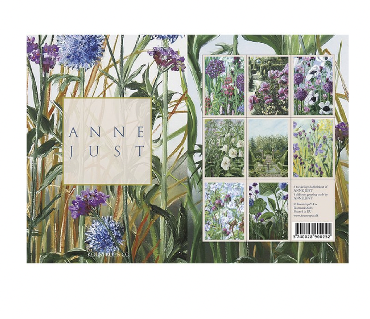 Prachtige kwaliteitskaarten met 8 verschillende motieven van planten en bloemen van de Deense kunstenaar Anne Just.