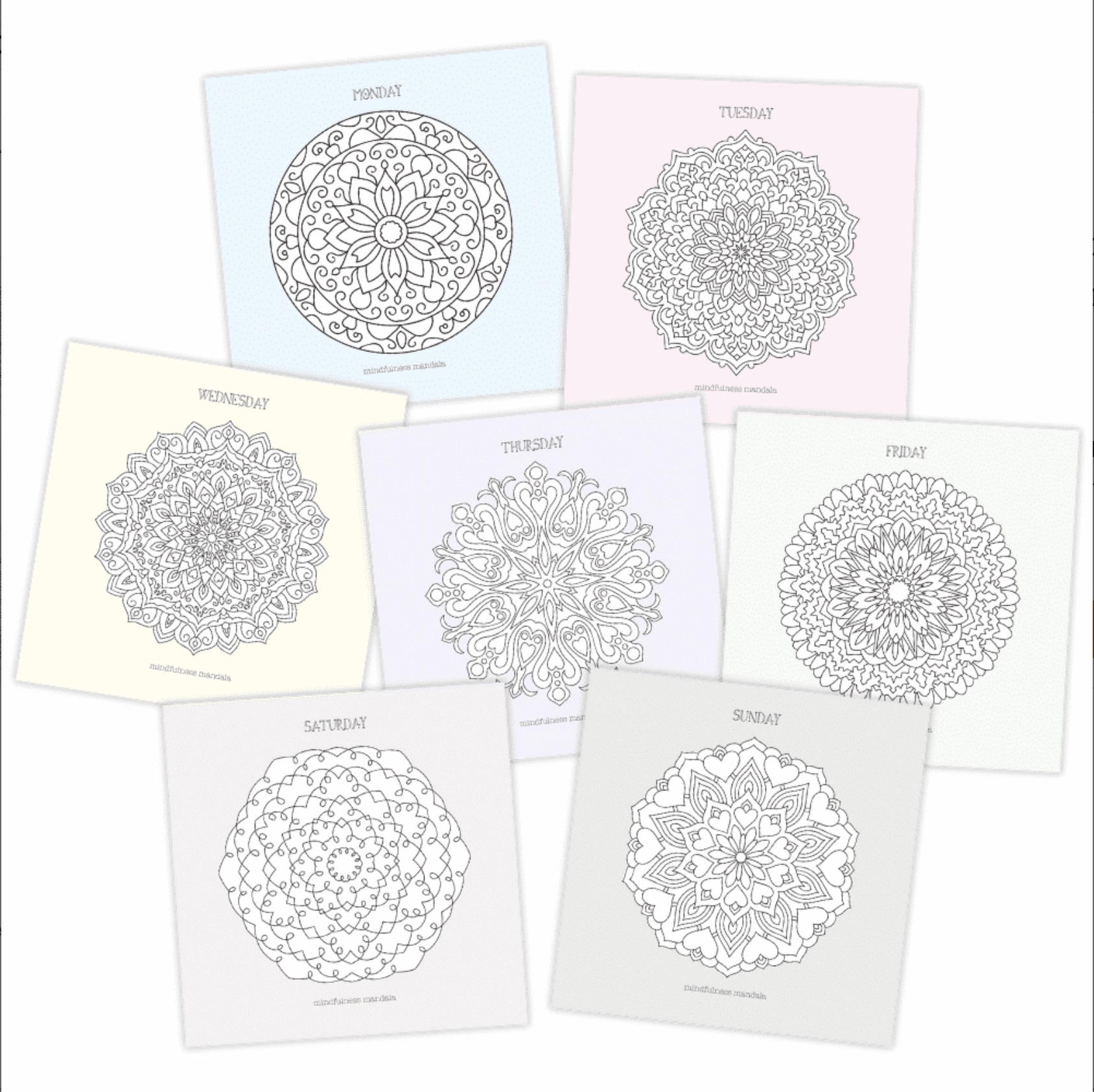 7 Mandala kaarten. De kaarten kun je zelf inkleuren. Deze kaartenset komt met een Daphne’s Diary potloden zet.