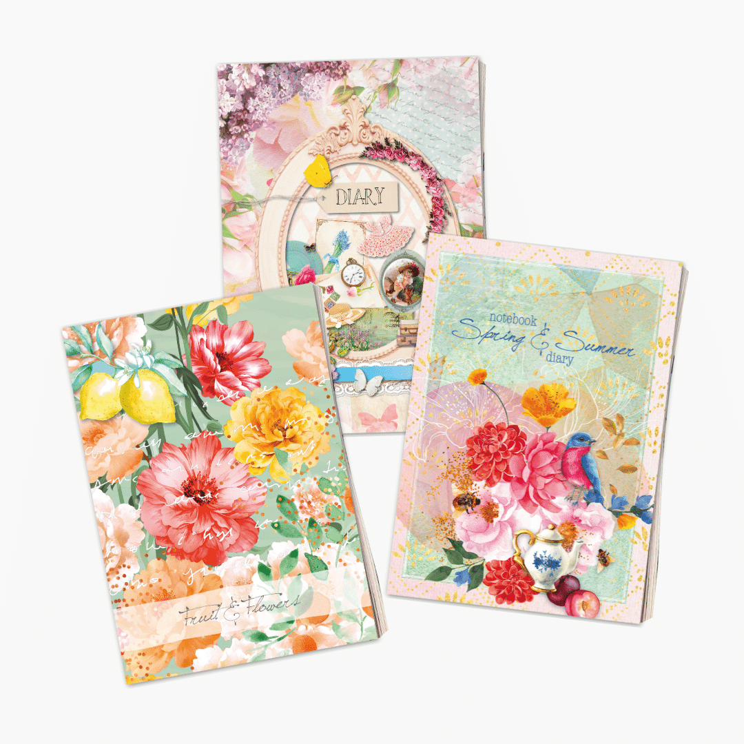 The set includes three different notebooks in A5 format, perfect for all your plans, notes, and creative ideas. Each page features beautiful, colorful designs.