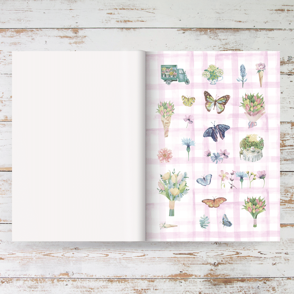 In Daphne’s Diary Sticker Book 4, you’ll find a bit of everything: flowers, labels, washi tapes, and much more! You can stick them anywhere, from your planner to a sweet card or a gift for someone special. And if you’re really in the mood for sticking, you can get the whole set along with Sticker Books 3 & 5. Super convenient and always something fun to craft with. This large sticker book contains 48 sheets with over 750 stickers!